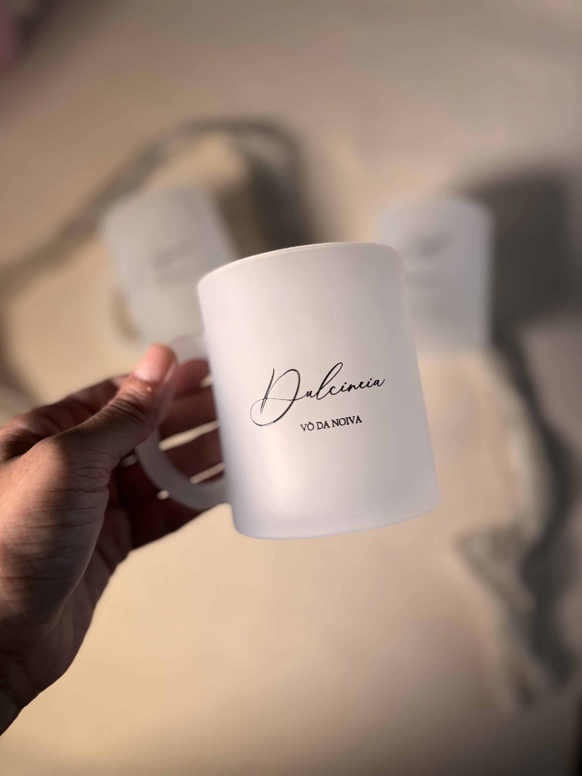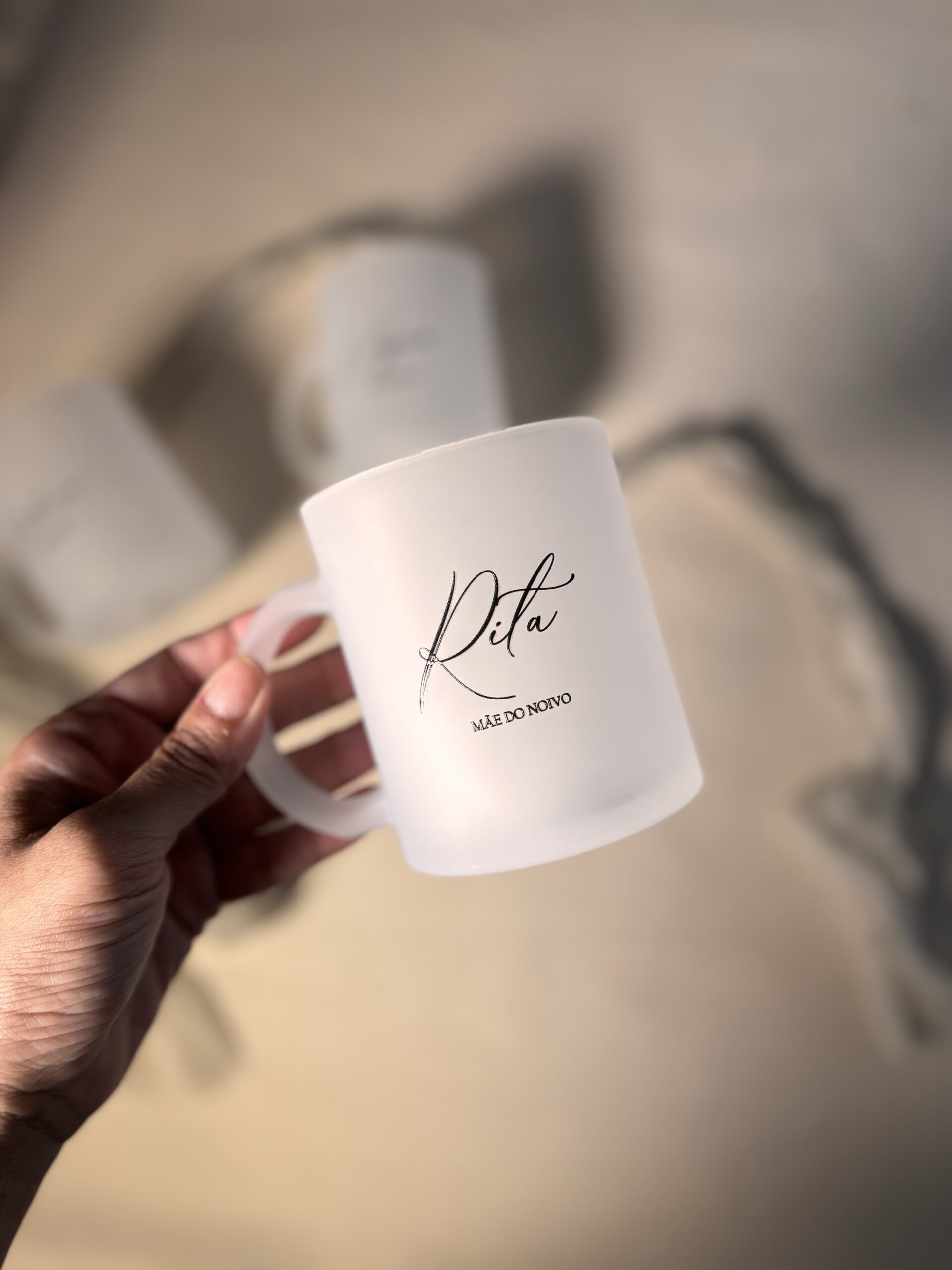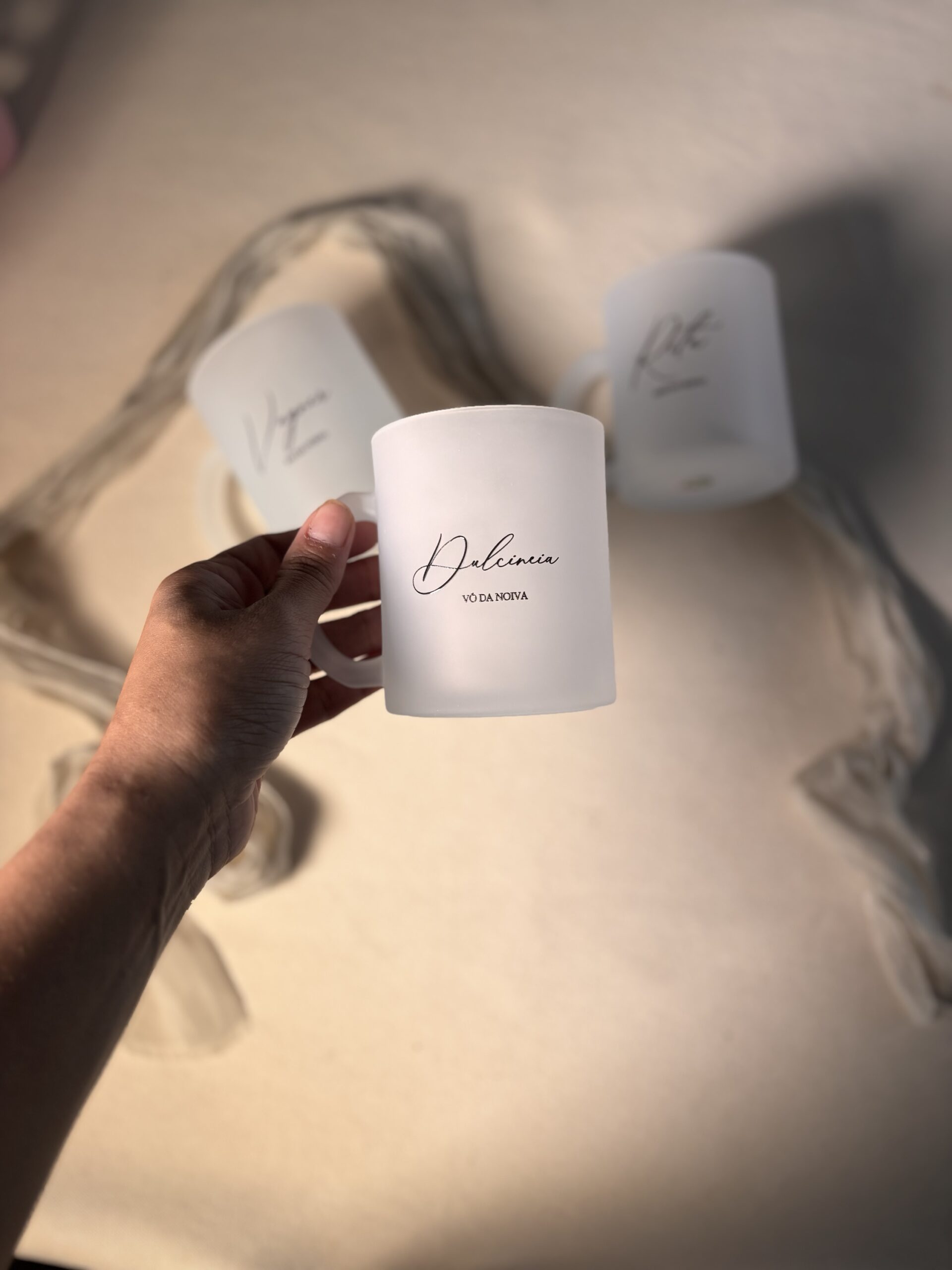 Personalização: Frente e Verso da caneca podem ser personalizados, com o monograma do casal e nome dos padrinhos